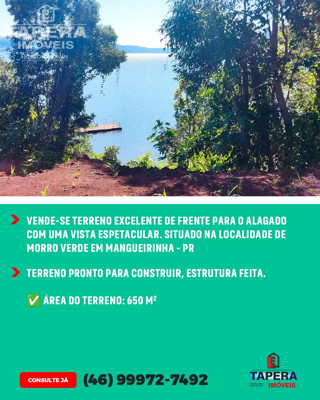VENDE-SE terreno excelente de frente para o alagado com uma vista espetacular, na localidade do Morro Verde em Mangueirinha - PR.