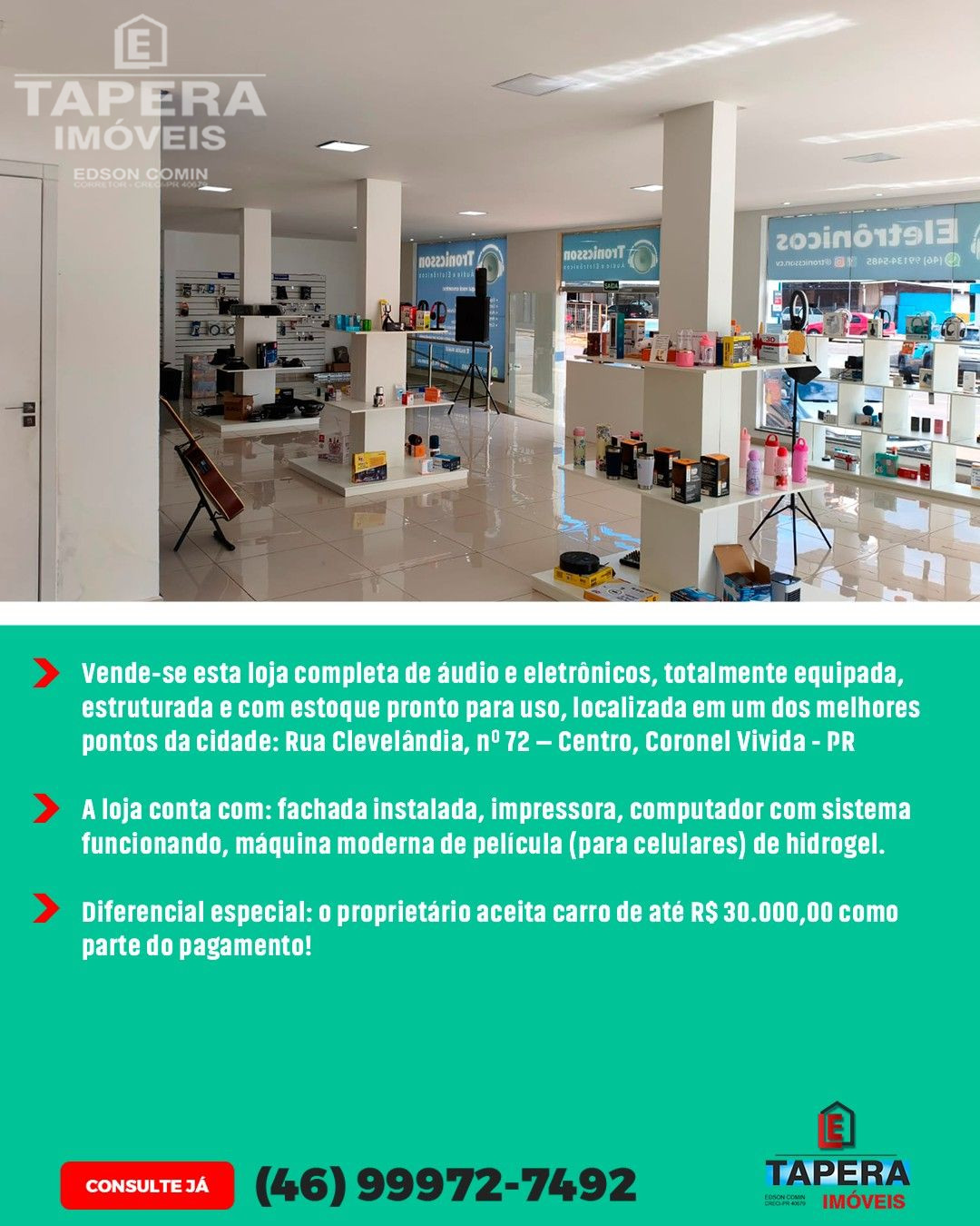 REF 123-Loja completa de áudio e eletrônicos, totalmente equipada, estruturada e com estoque pronto para uso, localizada em um dos melhores pontos da cidade: Rua Clevelândia, n.º 72Centro.