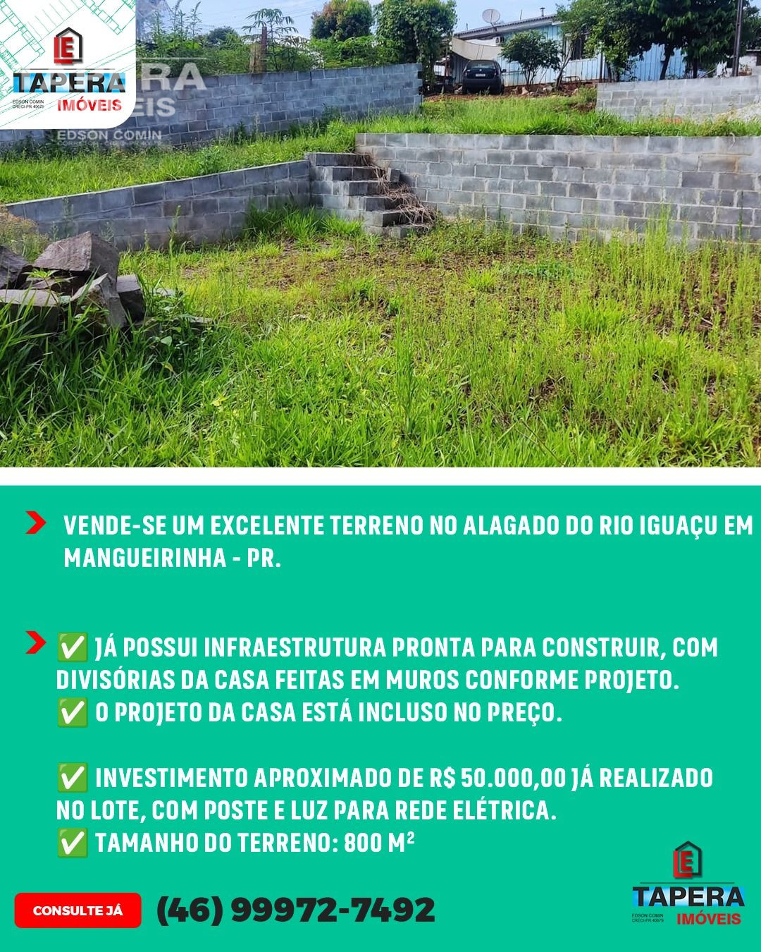 ✅ Aproximadamente R$ 50.000,00 já investidos no lote;